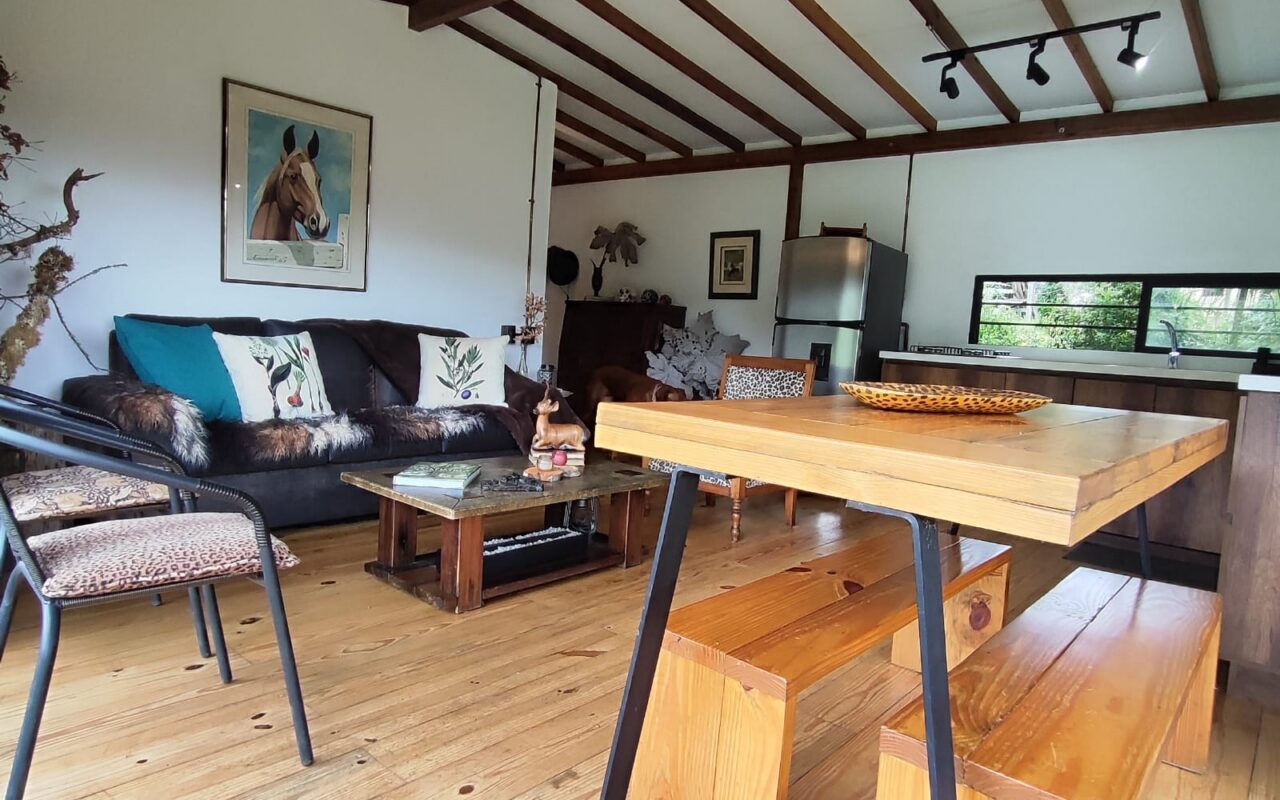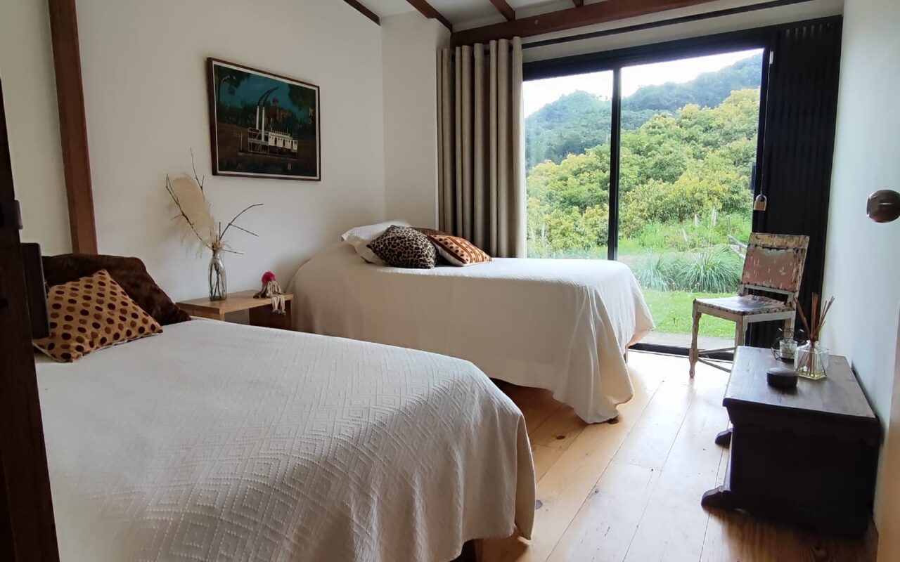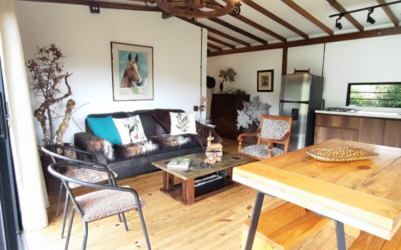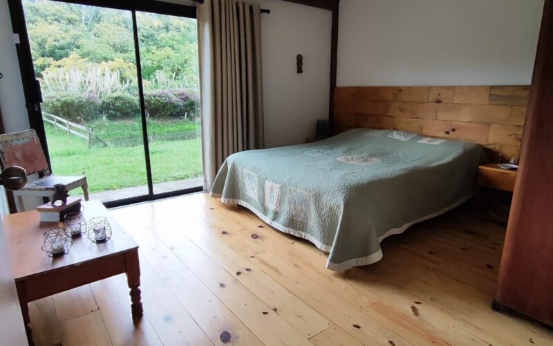 The living space includes a 60 m2 chalet, a 73 m2 rustic house, and a 45 m2 bodega, offering a total of two bedrooms, three bathrooms, a balcony, and maid’s quarters.
