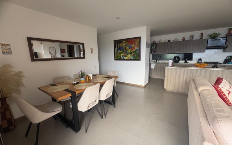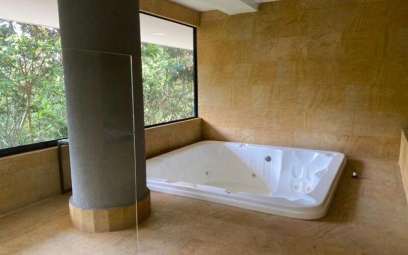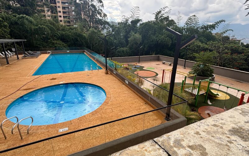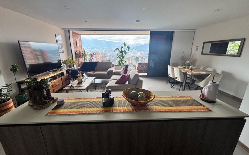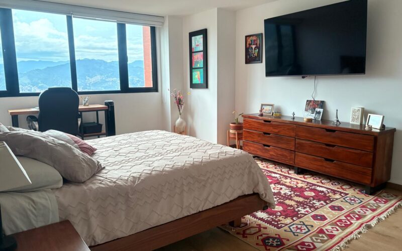 This one-level, three-bedroom, four-bathroom apartment is situated in Loma del Escobero, Envigado.