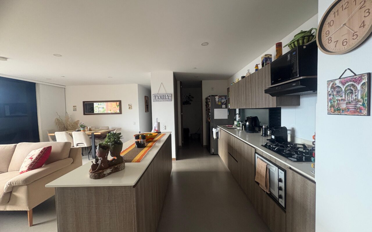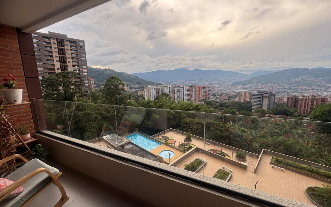 This one-level, three-bedroom, four-bathroom apartment is situated in Loma del Escobero, Envigado.