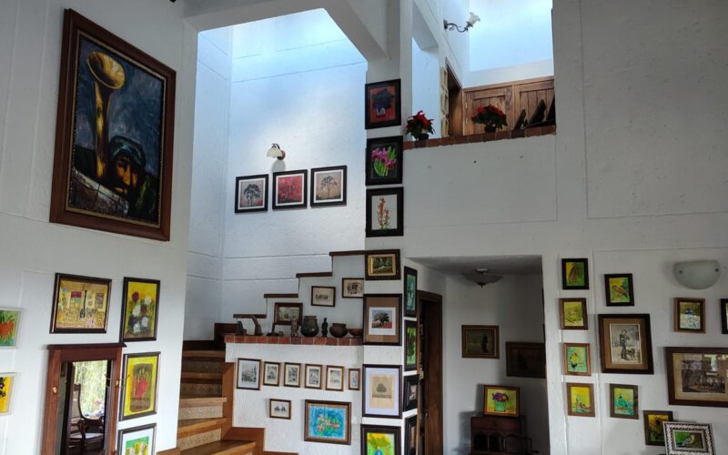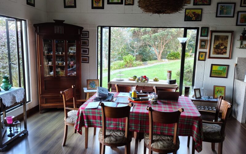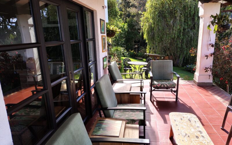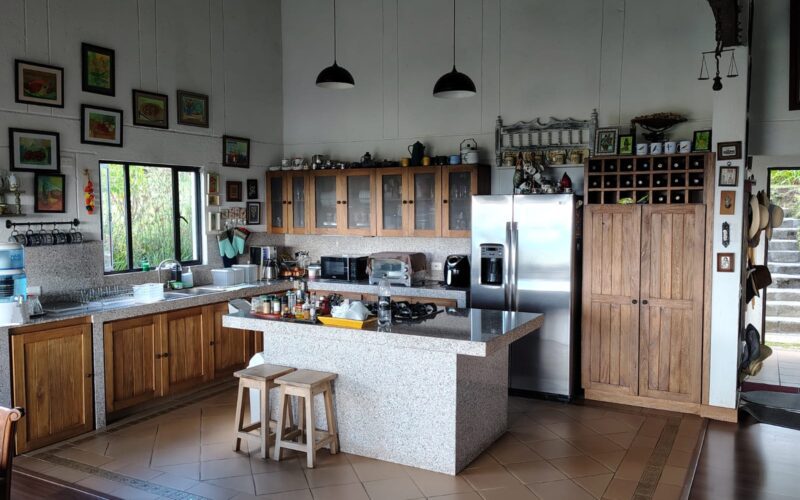 The property features large green areas, a hobbie room, and is within walking distance to the town of Santa Elena.