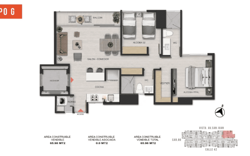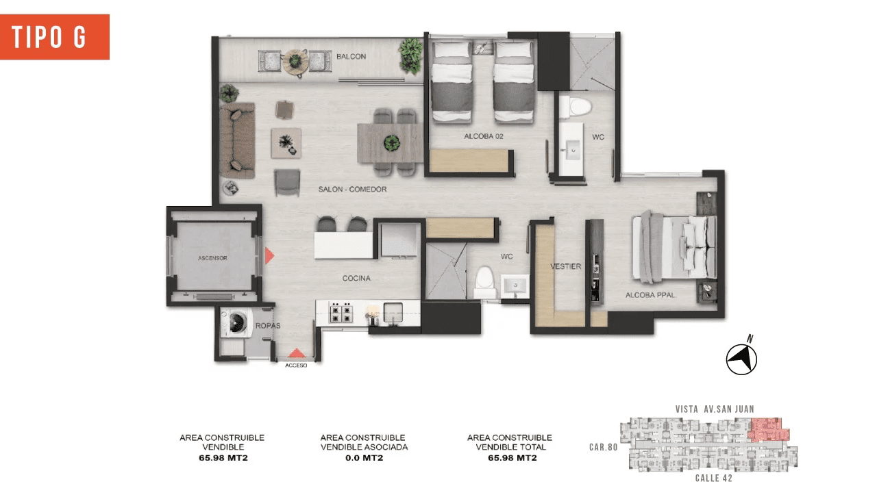 Its strategic position on Avenida San Juan is near the vibrant La 70 district and the future Metro line on Avenida 80.