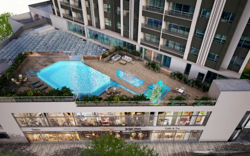 Residents will enjoy extensive club-style amenities, including a swimming pool, a gym, a coworking space, a theater room, and a rooftop solarium with a jacuzzi and Turkish bath.