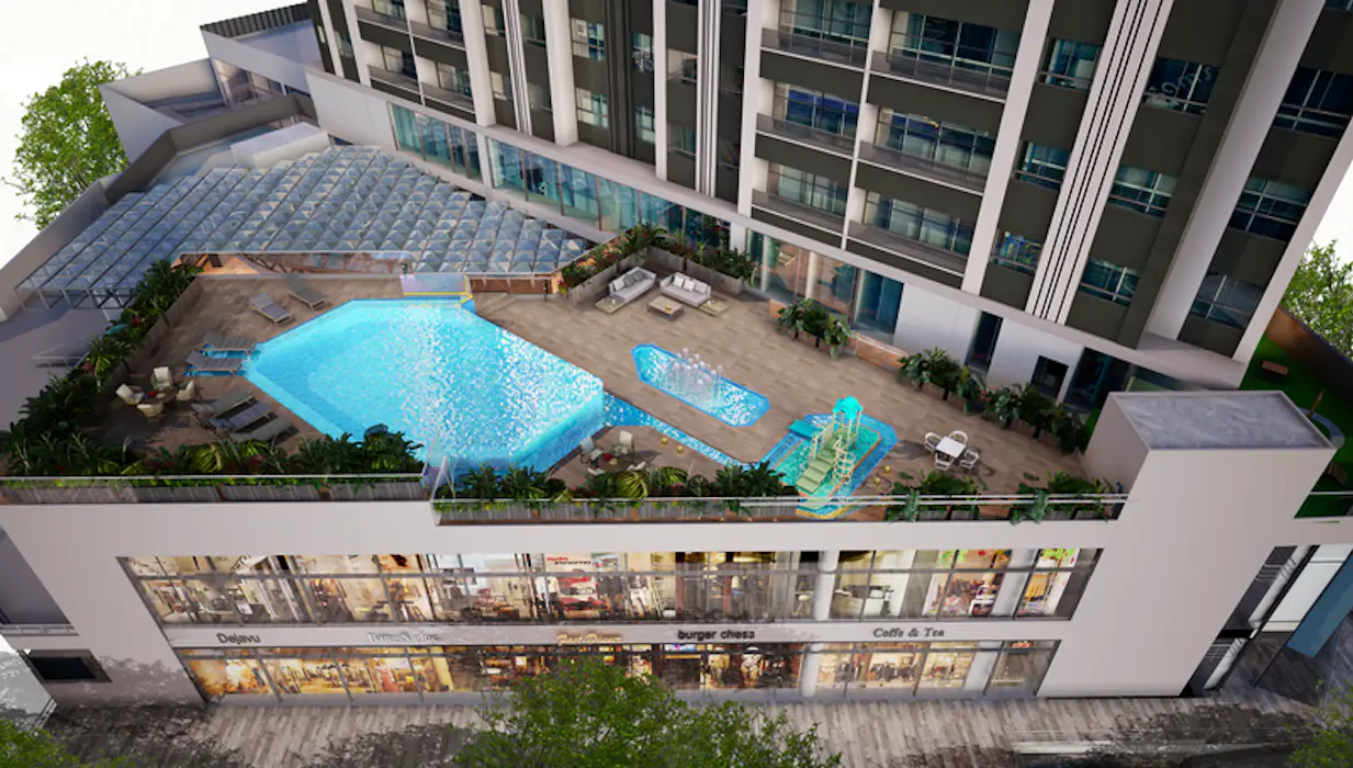The complex is well-equipped for families and pets, featuring a dedicated pet area, a kids’ playground, and a game room, alongside practical spaces like a BBQ area and commercial zone.