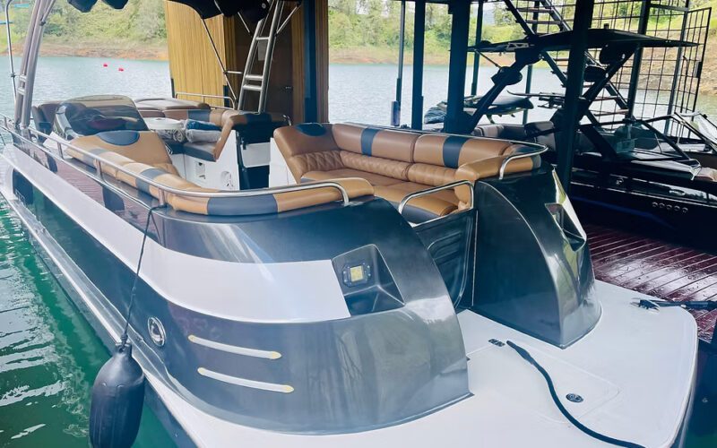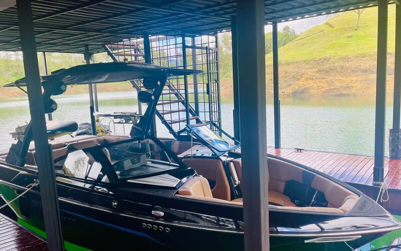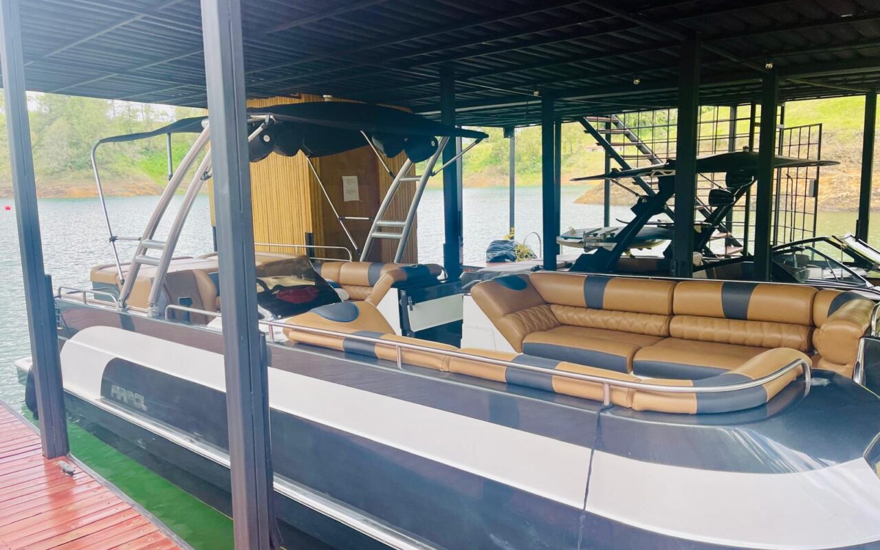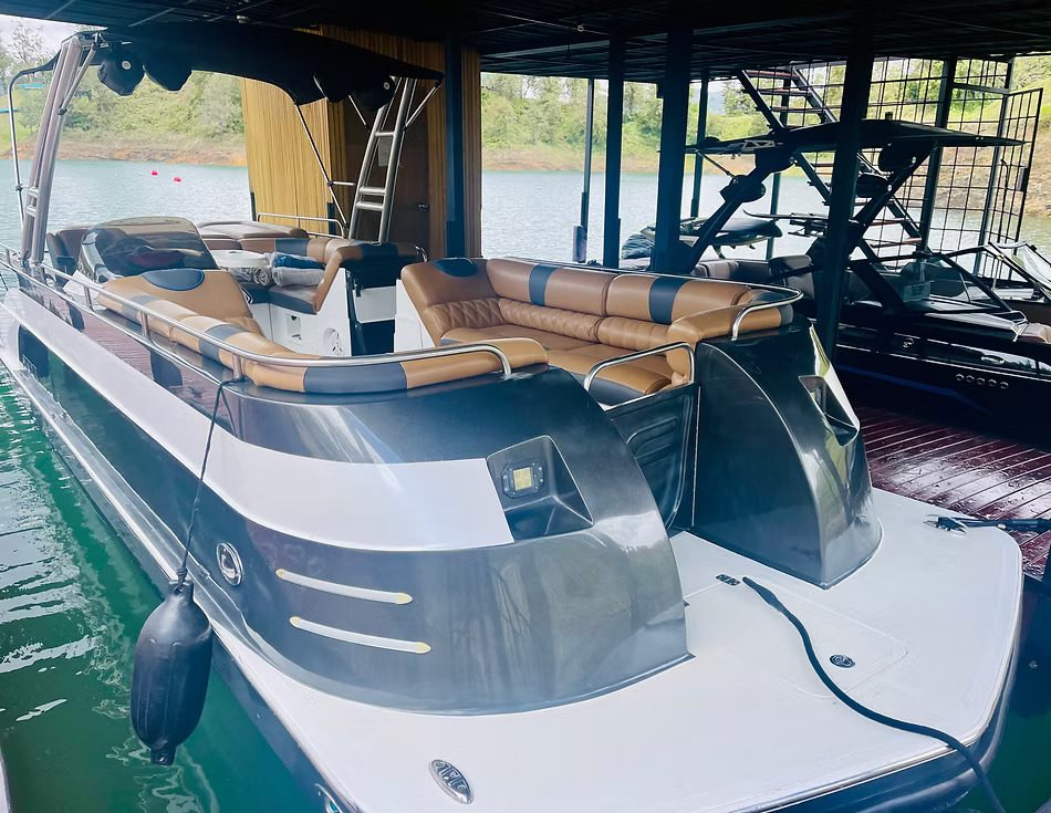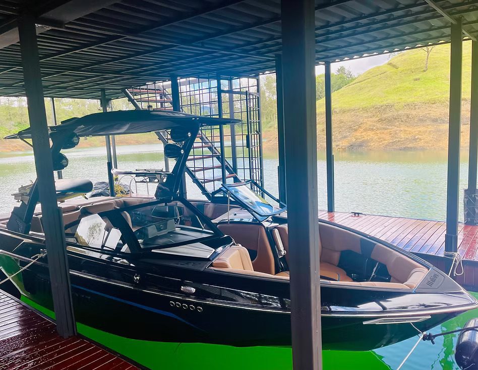 This unique offering is sold as a complete lifestyle package, including two boats—a Malibu Wakesetter and a Sunpool pontoon—along with an ATV.