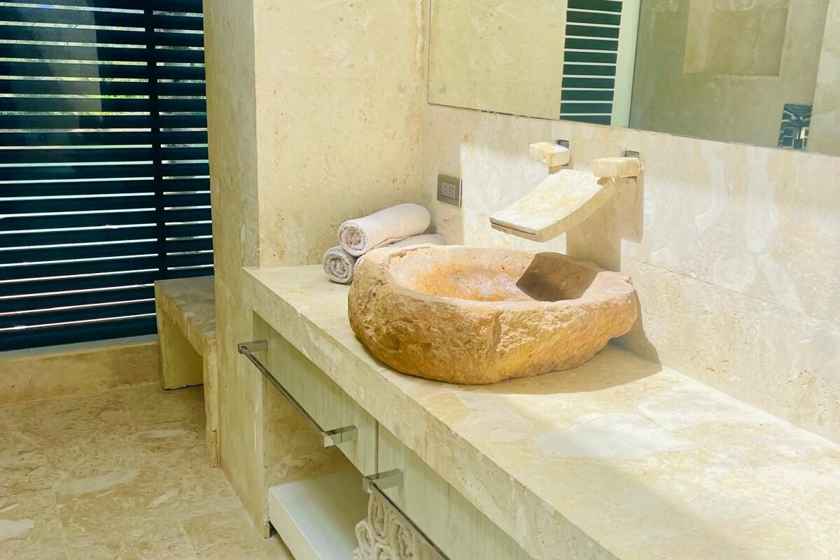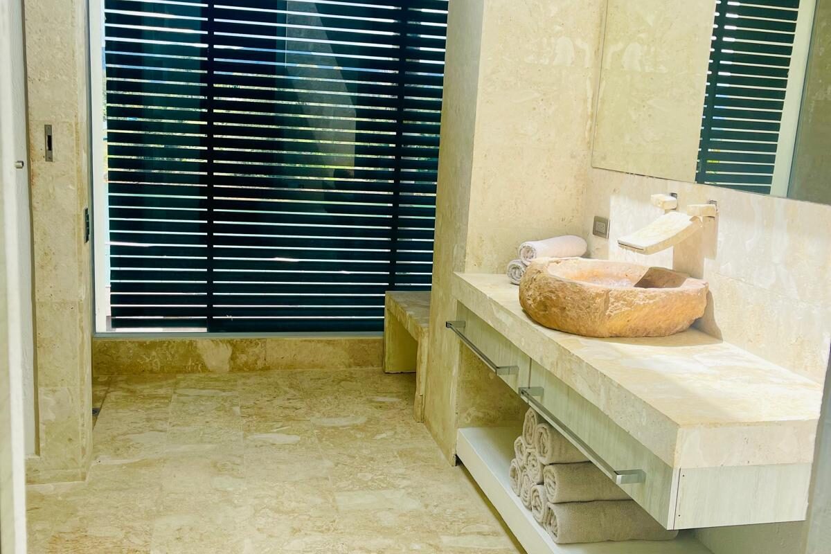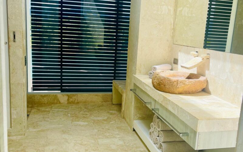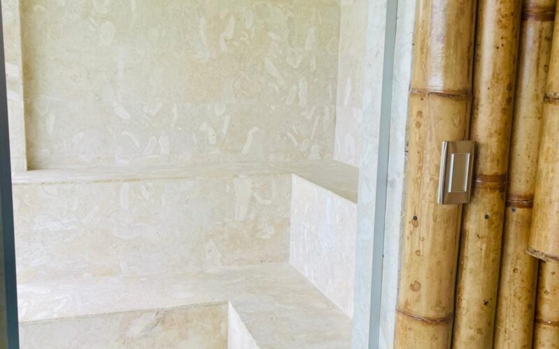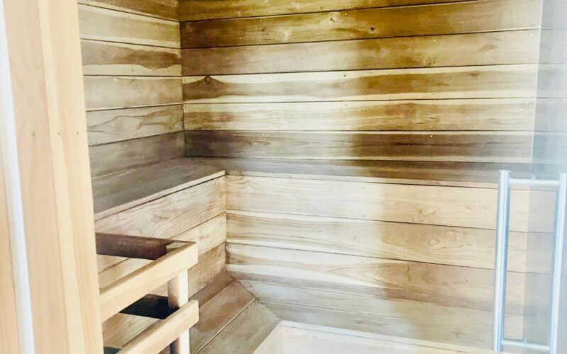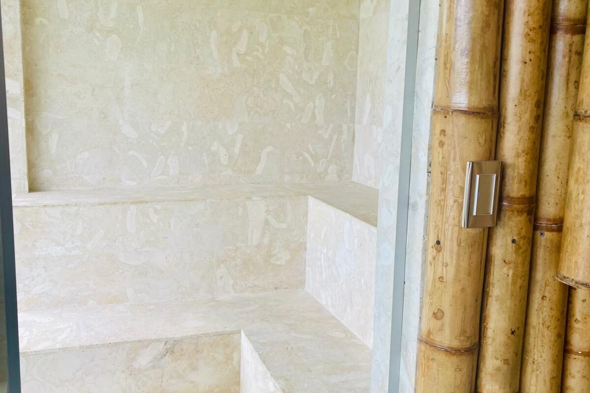 The residence offers a comprehensive wellness experience with both indoor and outdoor jacuzzis designed for year-round relaxation.