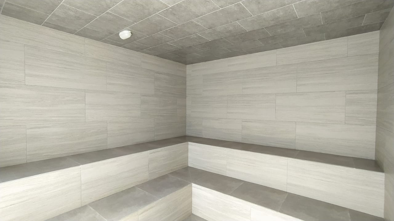 Amenities include a roof-top common area with a gym and steam room, 24-hour video surveillance (security), and an elevator.