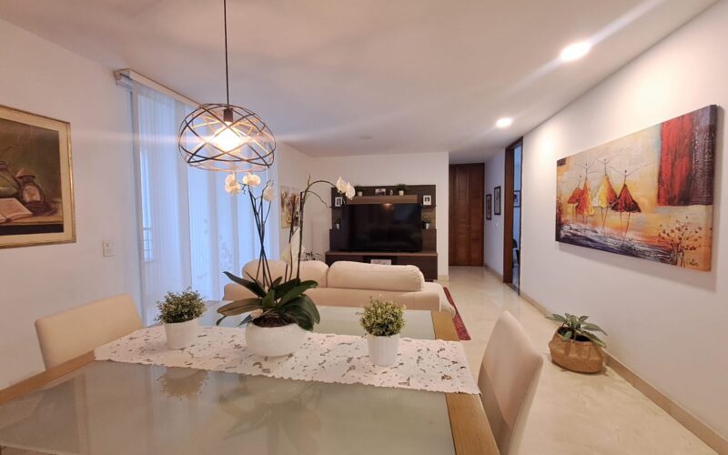 This expansive 134.5m2 apartment, built 14 years ago, offers three bedrooms, three and a half bathrooms, and a maid’s quarters in the Santa Maria de Los Angeles sector of El Poblado.