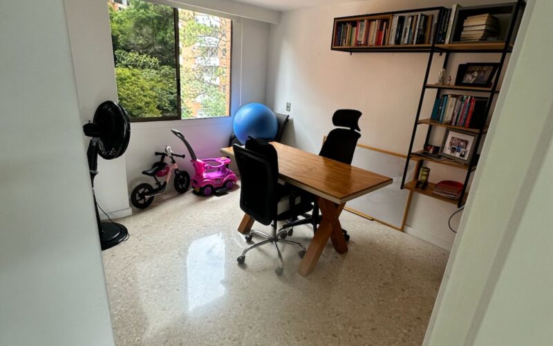 This three-bedroom, two-bathroom apartment also includes a maid’s quarters and is located in the Campestre sector of El Poblado.