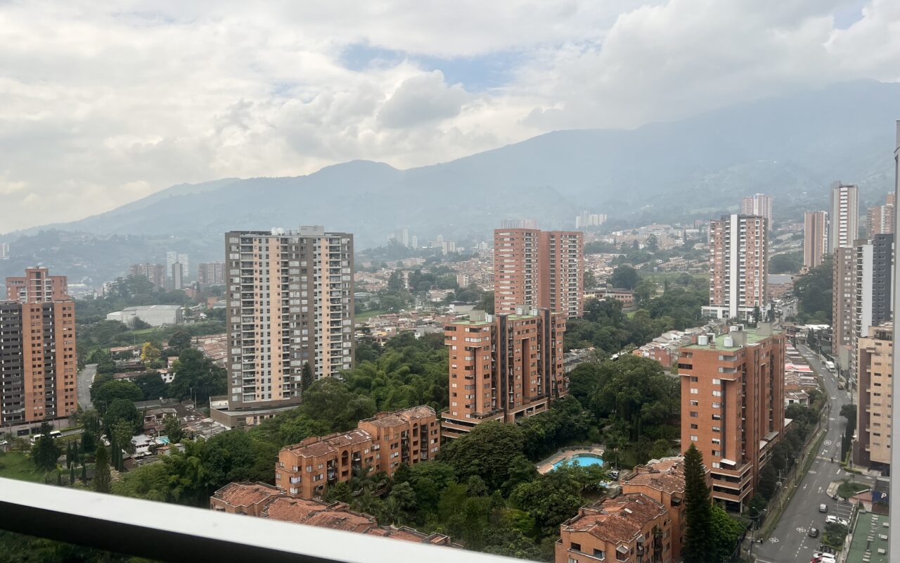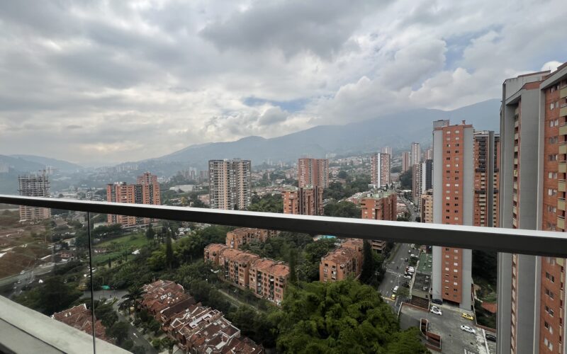 The property includes twenty-four hour security, an elevator, and a balcony, and it is within walking distance of Mall Suramérica, the German School, and the Sabaneta and La Estrella Metro stations.