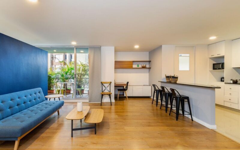 This apartment is located in the Lalinde sector of El Poblado and features 66 m2 of living space.