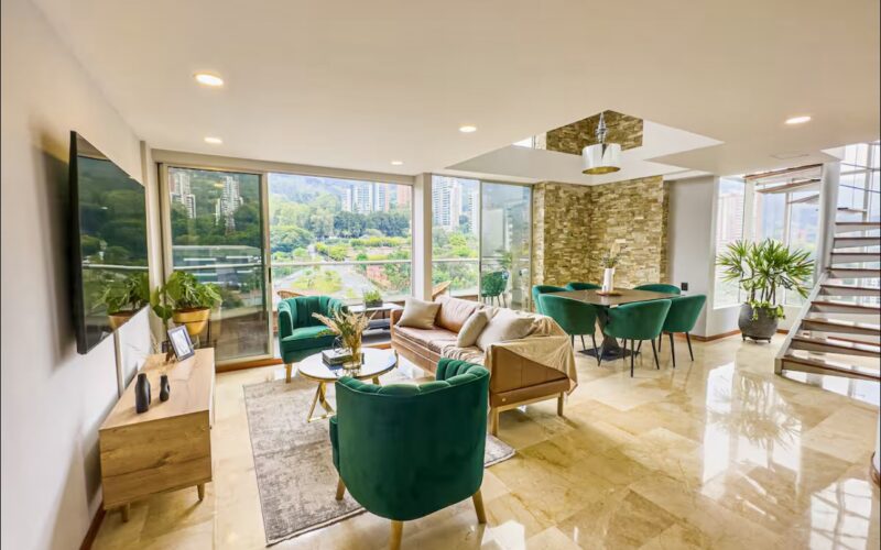 This three bedroom and four bathroom apartment is located in the El Tesoro sector of El Poblado.