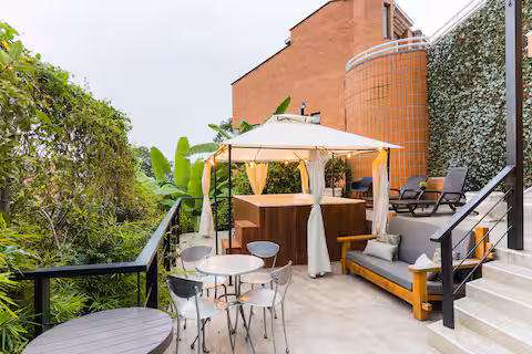 This amazing two-level home offers five bedrooms and five bathrooms, plus a maid’s quarters, in the beautiful El Tesoro sector of El Poblado.