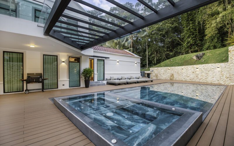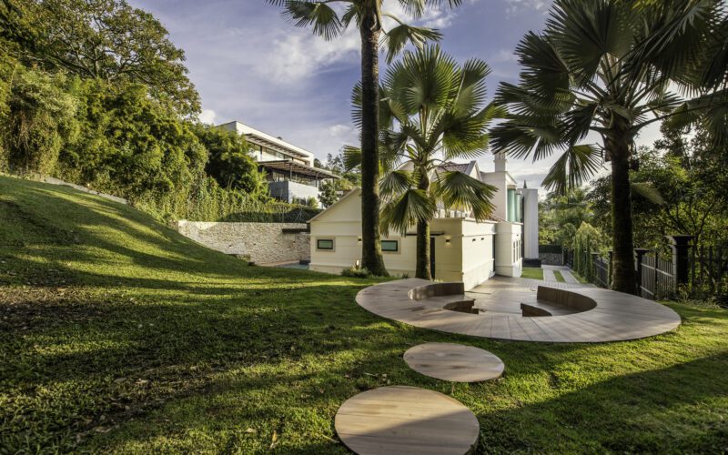 This multi-level home features two main levels of living space, a balcony, maid’s quarters, and includes air conditioning in all the rooms.