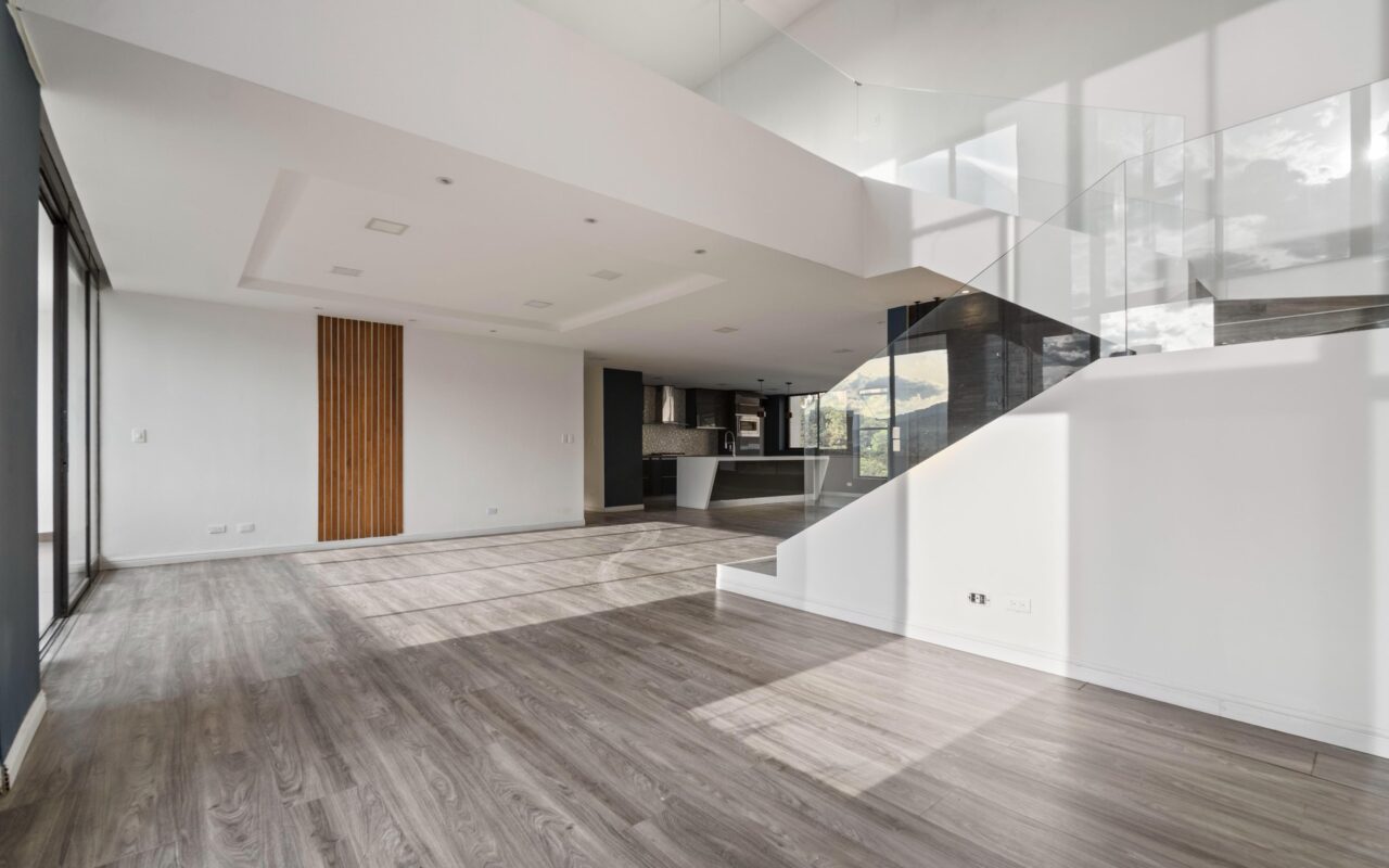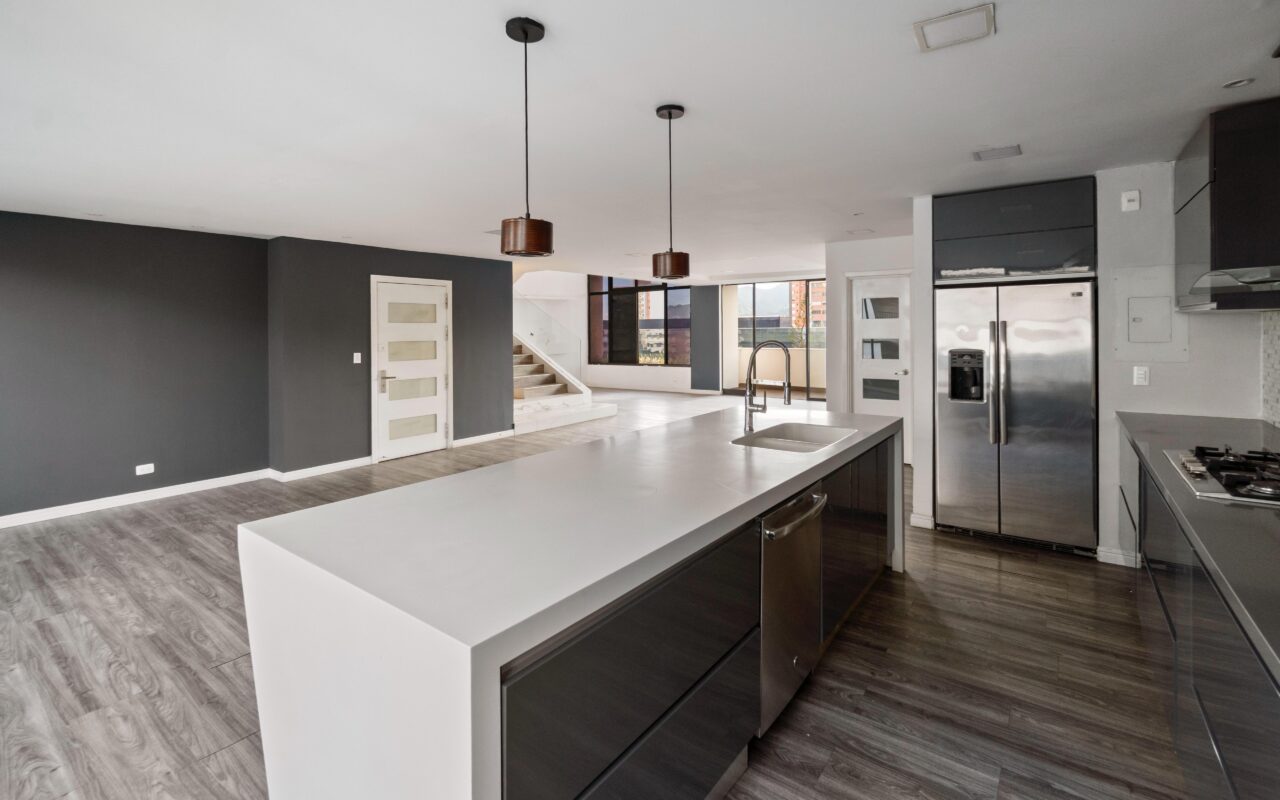 This spectacular two-level penthouse apartment offers five bedrooms, six bathrooms, and a maid’s quarters in the desirable Campestre sector of El Poblado.