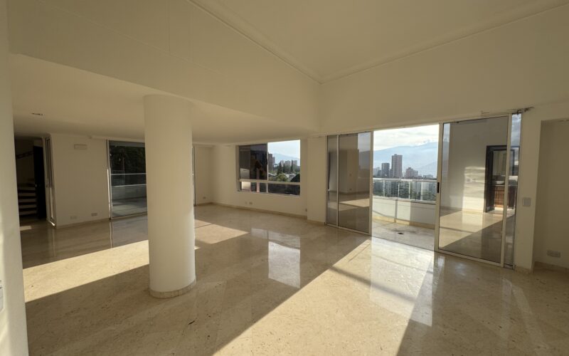 This two-level penthouse features four bedrooms, four bathrooms, and a maid’s quarters in the El Tesoro sector of El Poblado.