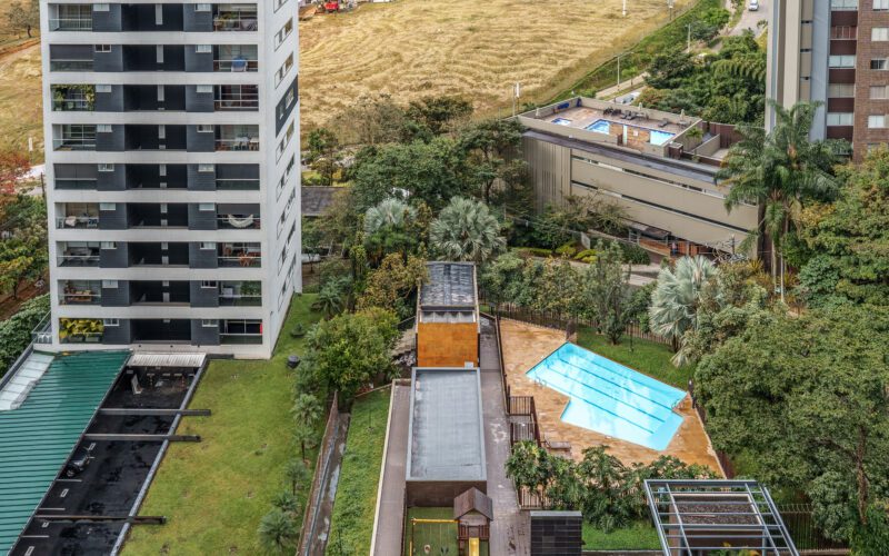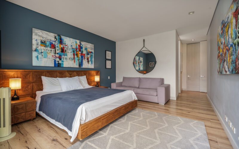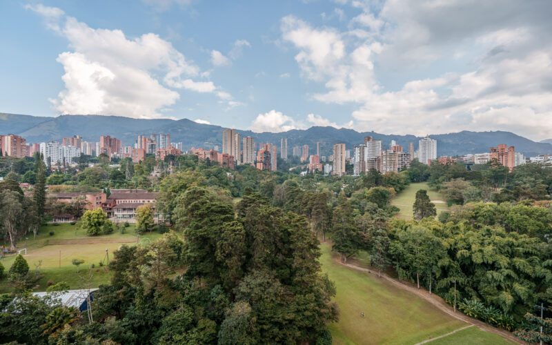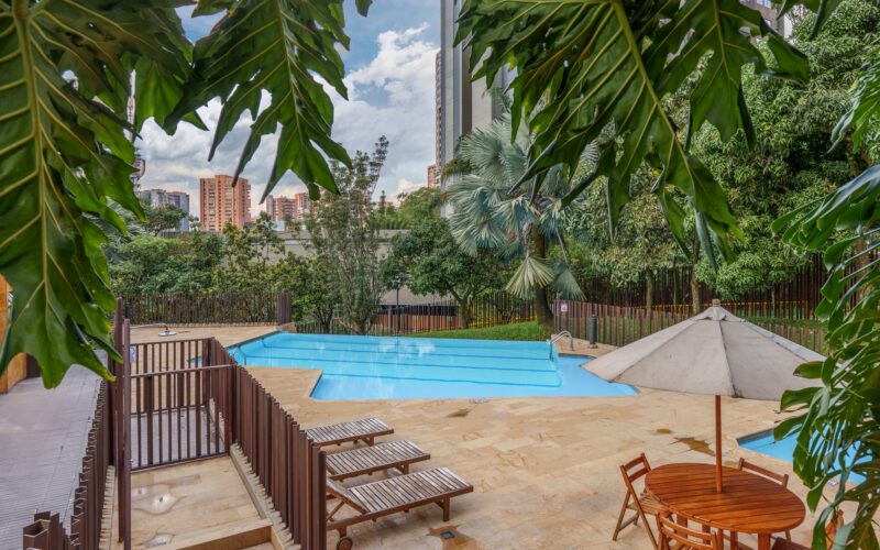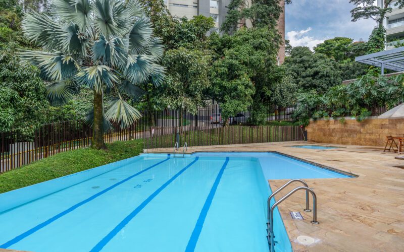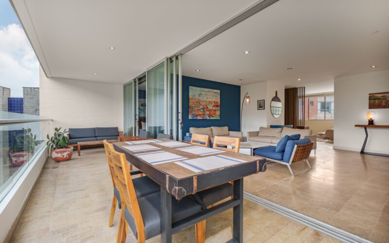 This stylish and quiet apartment is located in the Club Campestre sector of El Poblado, situated on a quiet cul-de-sac with no street noise and within walking distance of the Santa Fe Mall.