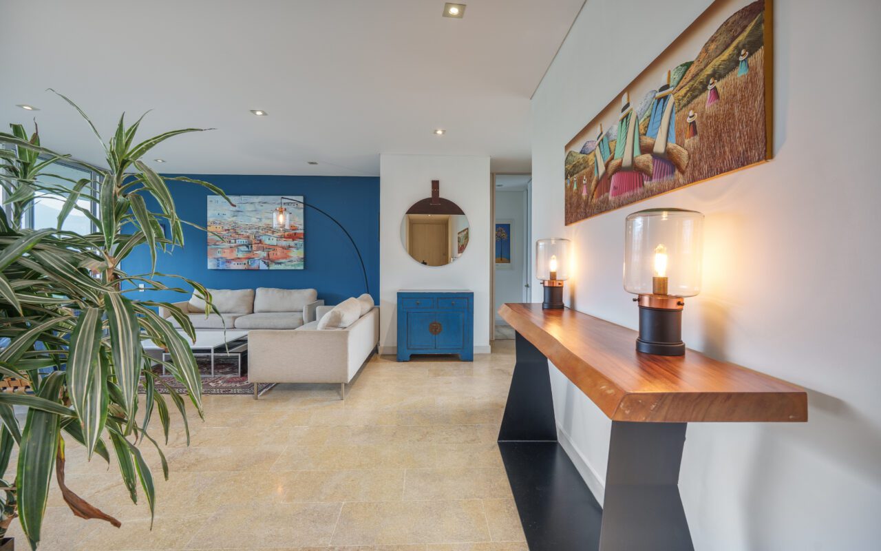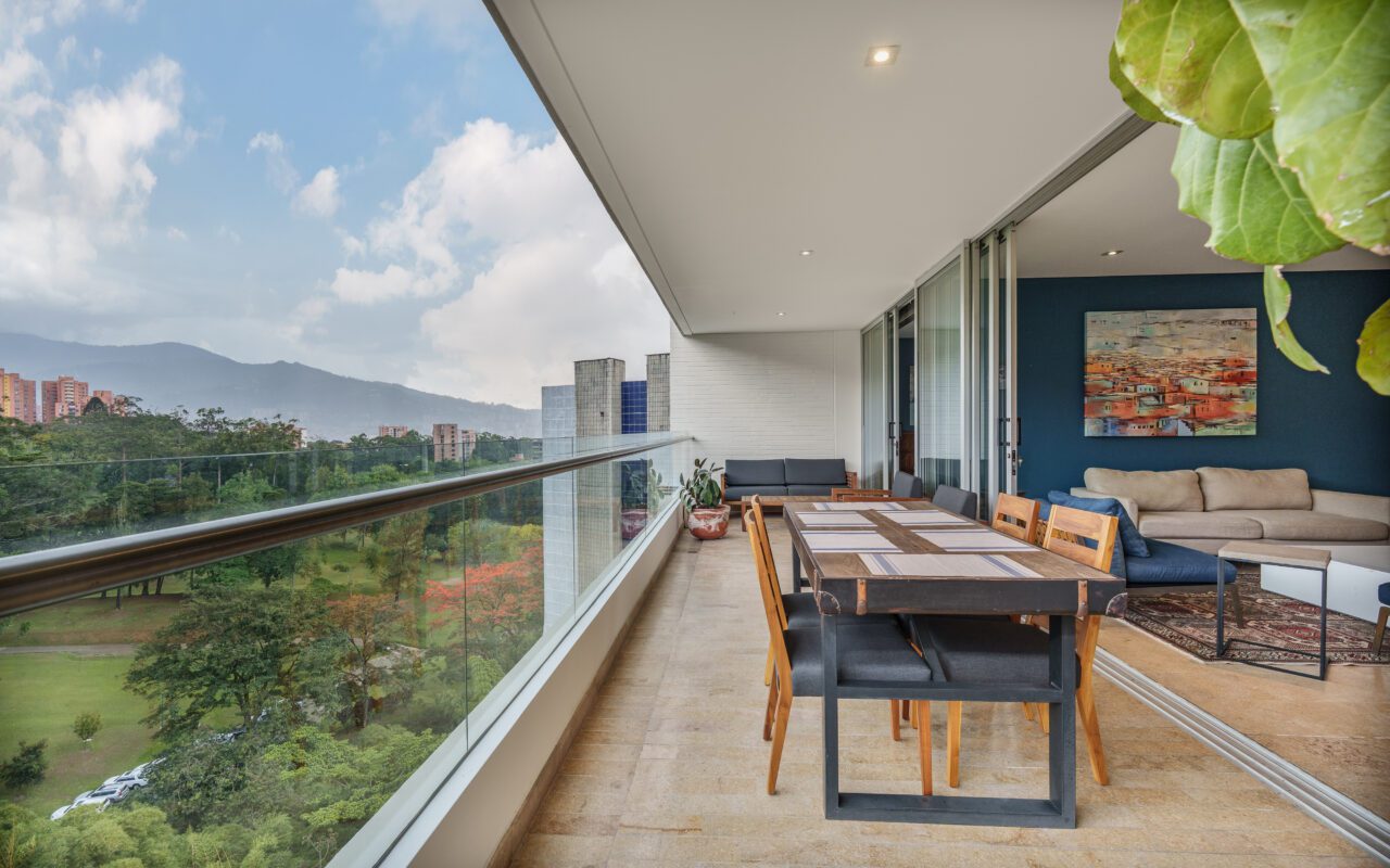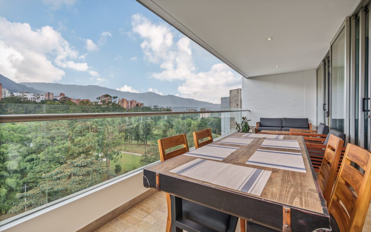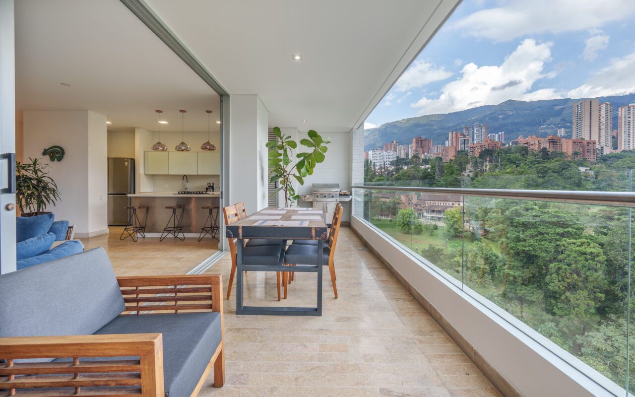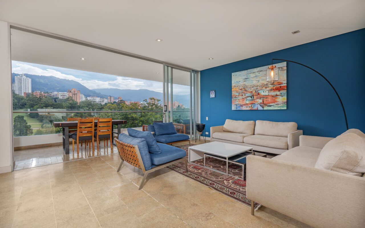 This stylish and quiet apartment is located in the Club Campestre sector of El Poblado, situated on a quiet cul-de-sac with no street noise and within walking distance of the Santa Fe Mall.