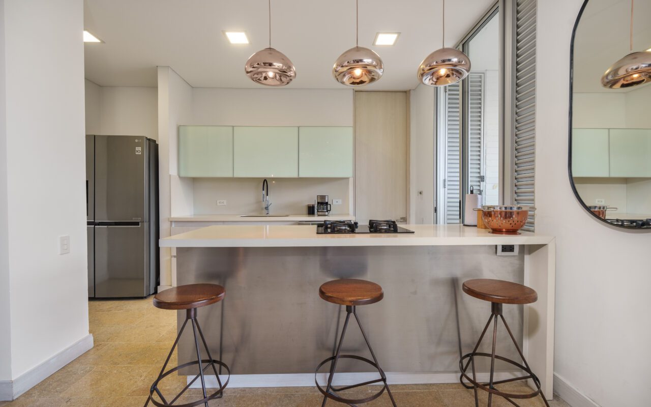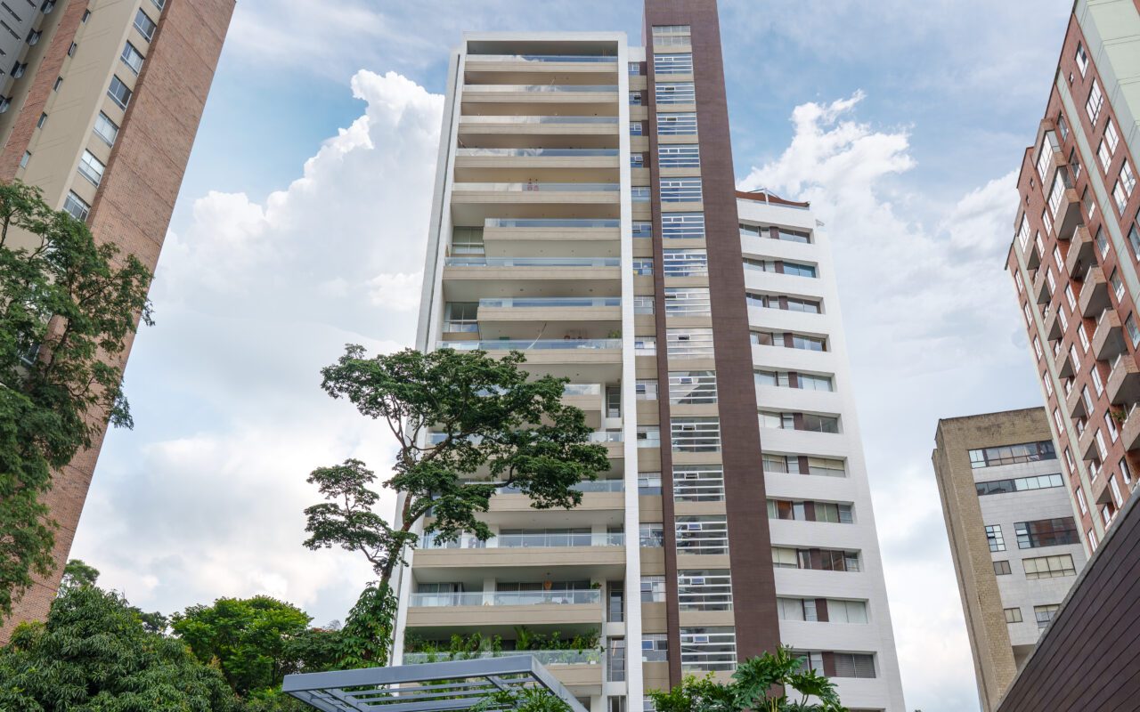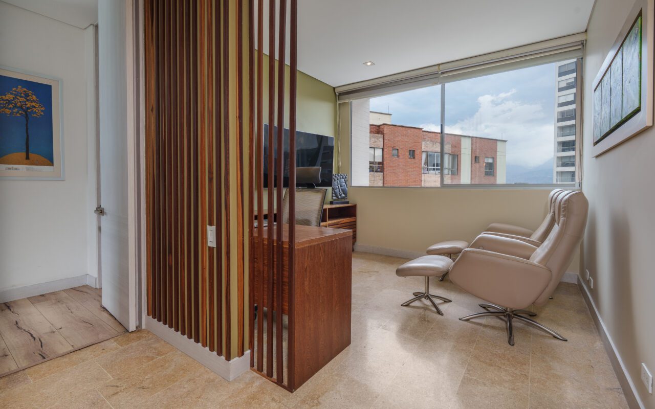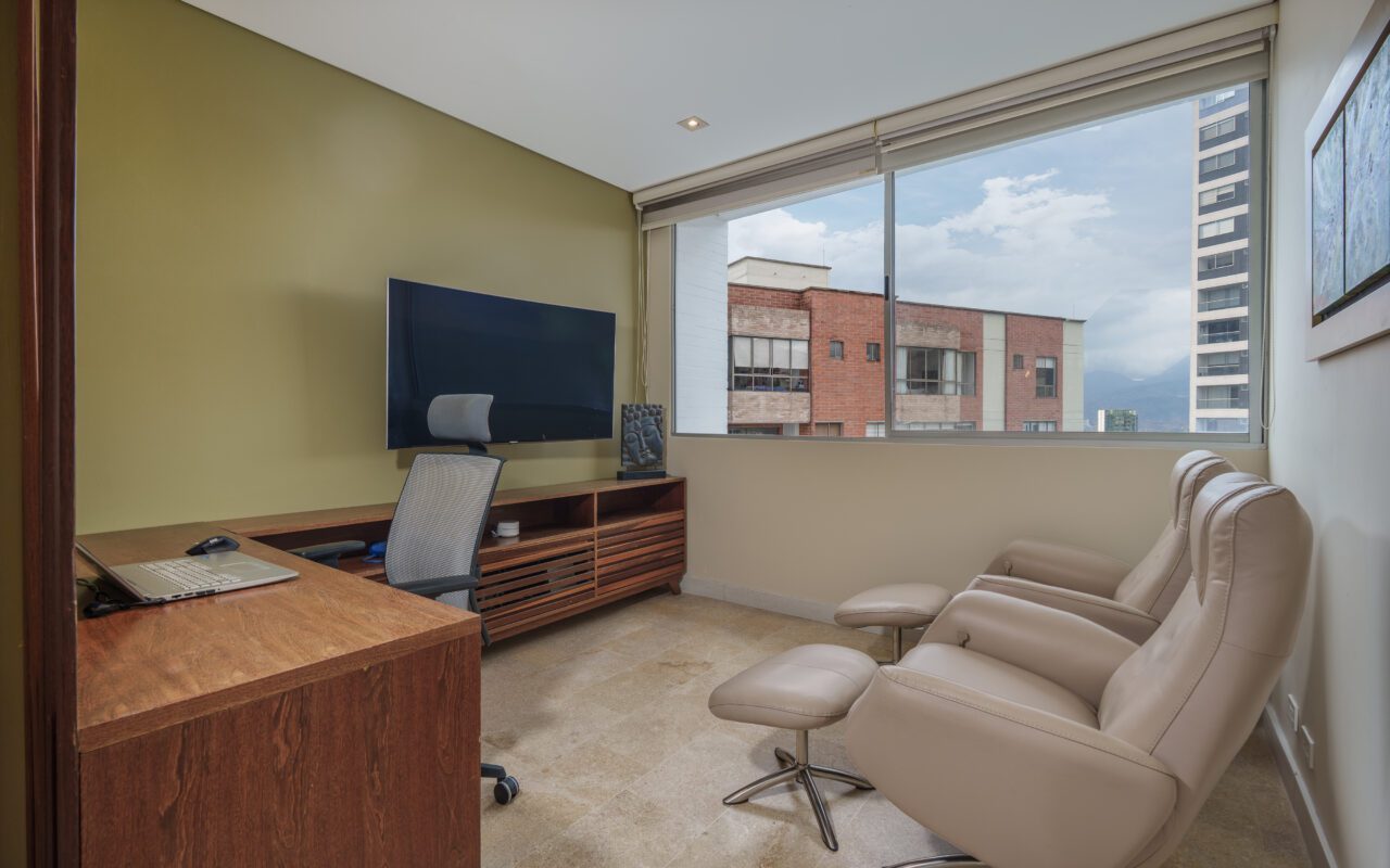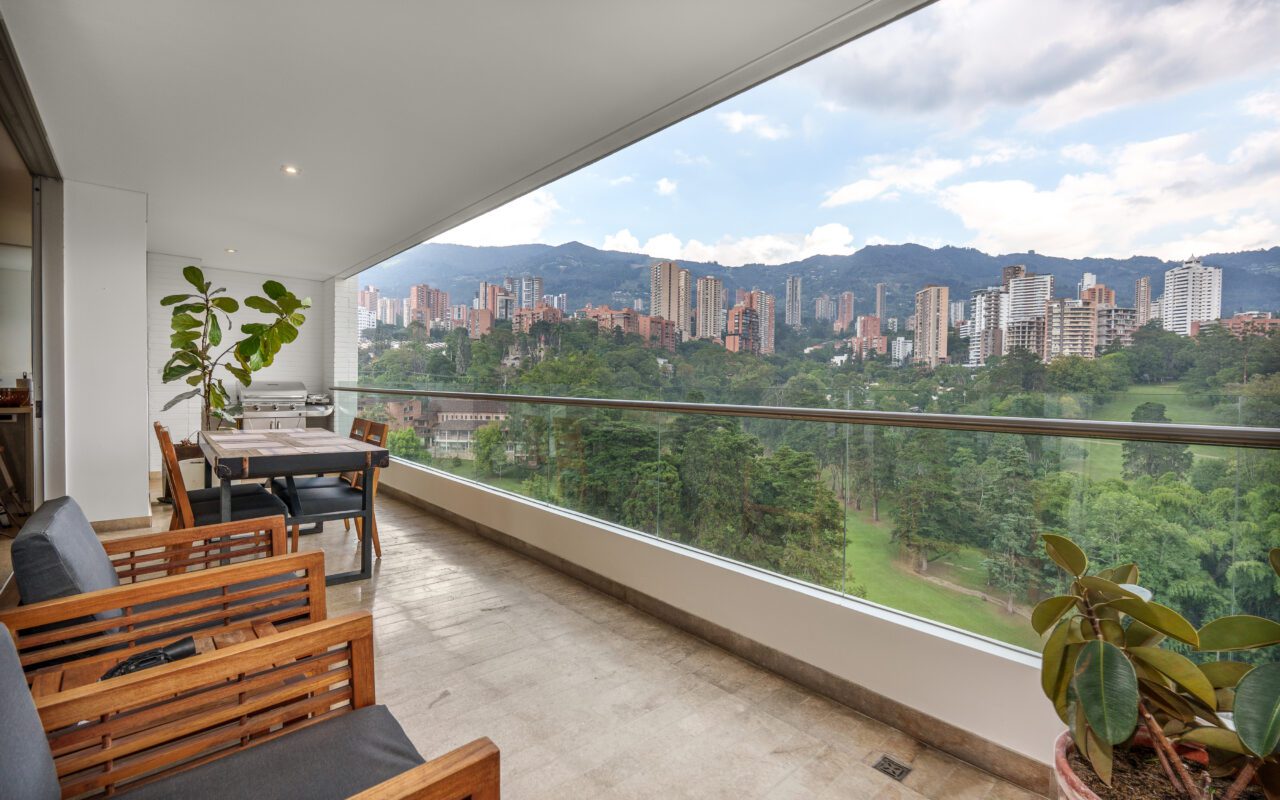 This stylish and quiet apartment is located in the Club Campestre sector of El Poblado, situated on a quiet cul-de-sac with no street noise and within walking distance of the Santa Fe Mall.