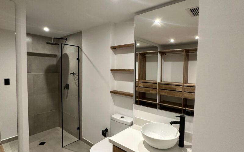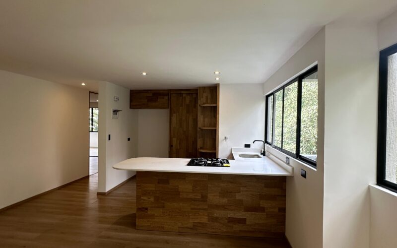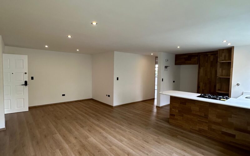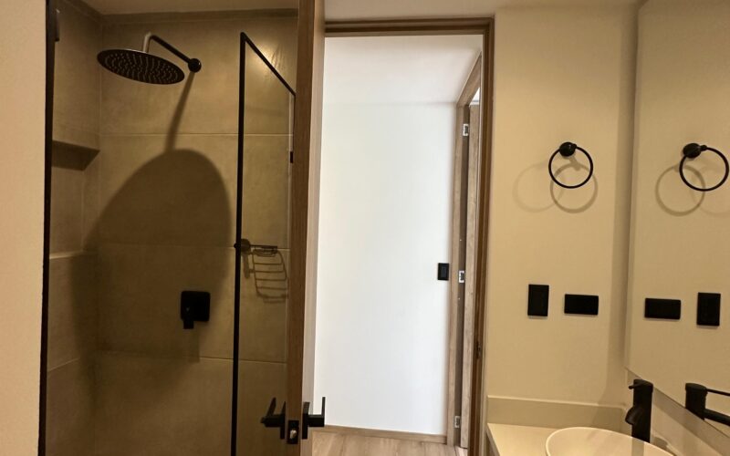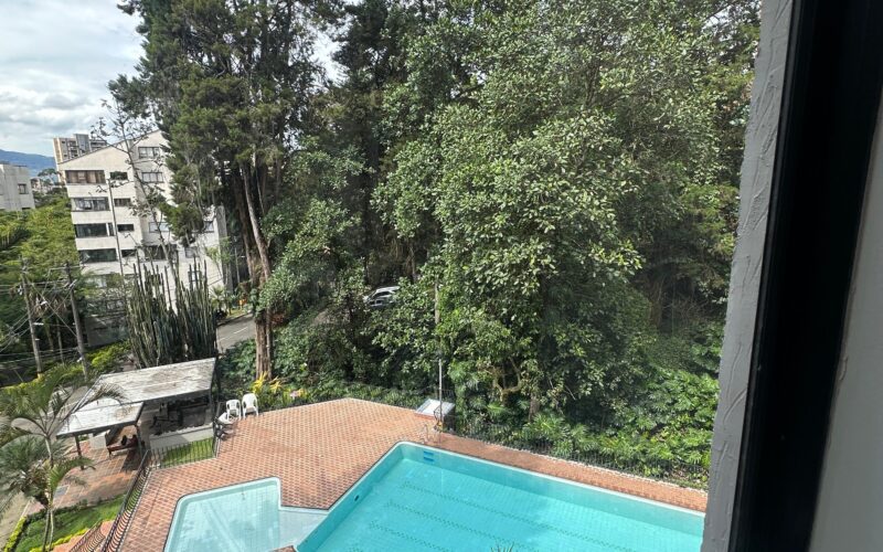 This two-bedroom, two-bathroom apartment is located in the El Tesoro sector of El Poblado.