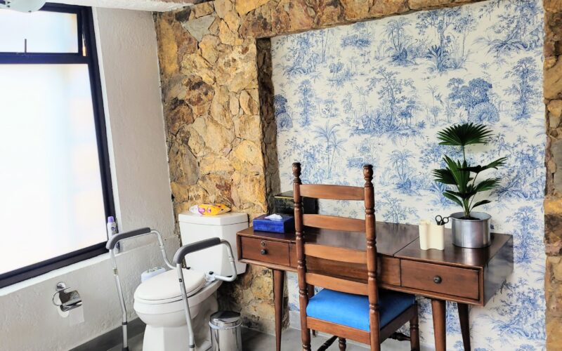 The property includes a garden-like terrace of 57m2, providing a quiet atmosphere that feels like living in a house in the middle of the city. Designed by a famous architect from Medellin, the home features an intentional mix of shapes and materials, including a master bedroom with a unique vaulted, rounded ceiling.